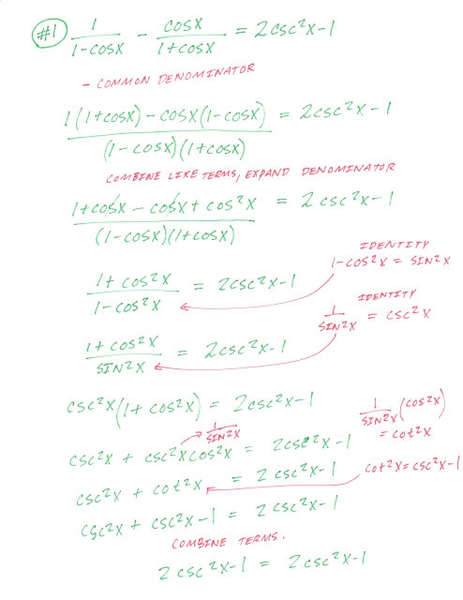 Secθ cosθ − tanθ cotθ =1 5. 1 + cos x = esc x + cot x sinx Tan2 0 +1 — 1 2 cos 0 5. That is, we want to verify that what we have is an identity. X x x 2 2 2 cos csc csc 1 Guidelines for verifying a trigonometric identity: 1+ cosx sinx = cscx +cotx 3. Solved exercises of proving trigonometric identities. Graph trigonometric functions graphs the 6 trigonometric functions. Cos xcot x cos x!1 tan x!3 csc x!1 or sin x!1 8. 4 5 4 35 c. C3 trigonometry y13 from verifying trigonometric identities worksheet, source:mathsteaching.wordpress.com Sum of the angles in a triangle is 180 degree worksheet.